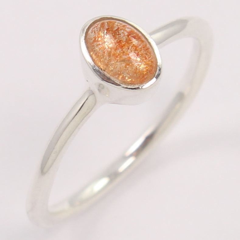 แหวนเงินแท้ 925 ประดับพลอยซันสโตนทรงรี ขนาด US 5.75 สำหรับงานแต่งงานและงานปาร์ตี้