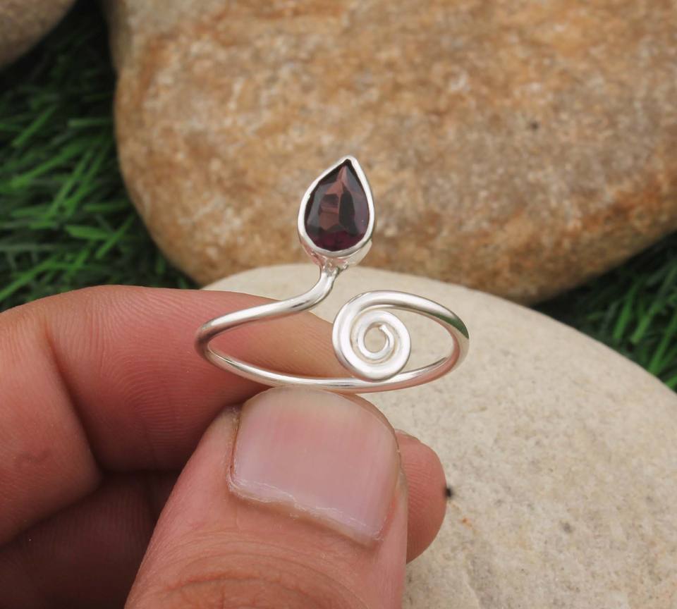 แหวนเงินแท้ 925 ประดับพลอยโกเมนสีแดงทรงเรียบง่าย ทำมือ สไตล์โบฮีเมียน คลาสสิก ประณีต แหวนเดี่ยว รับรองคุณภาพ เหมาะสำหรับงานแต่งงาน