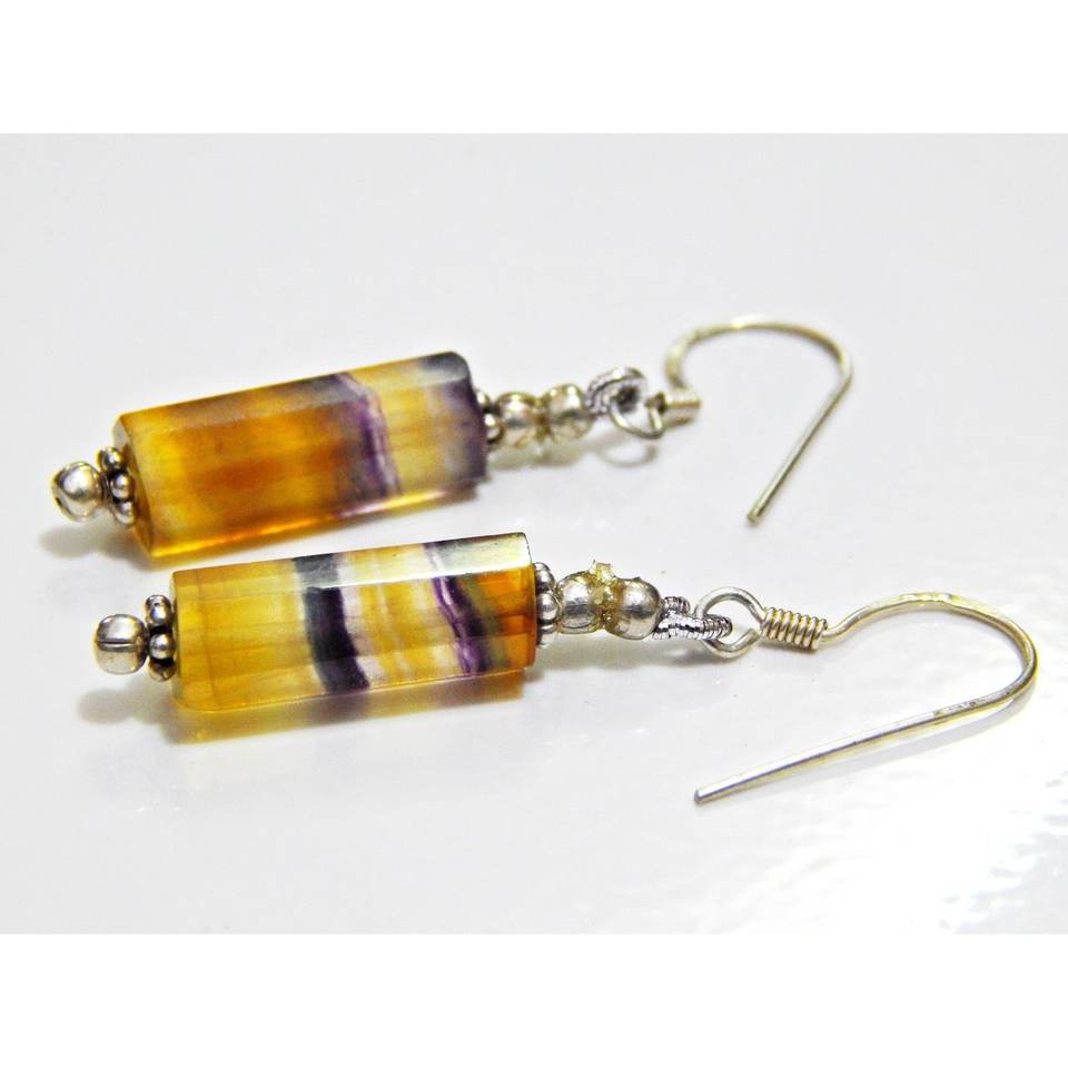 925สเตอร์ลิงเงินแท้ต่างหูลูกปัดฟลูออไรต์สีธรรมชาติของขวัญสำหรับงานแต่งงานต่างหูเงินแฟชั่น