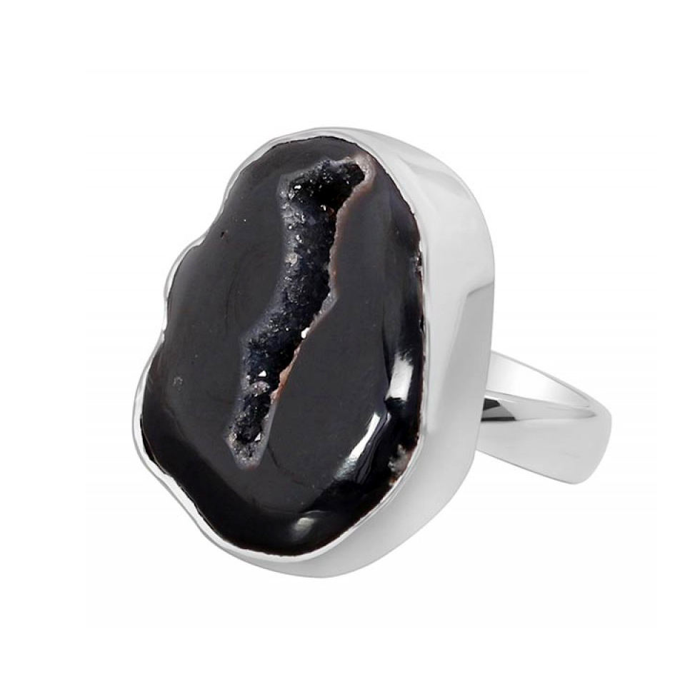 แหวนพลอยโมราสีดำเงินสเตอริง925