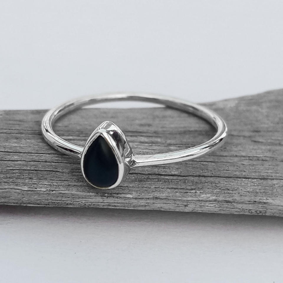 แหวนพลอยสไตล์โบฮีเมียนสำหรับเด็กผู้หญิงและผู้หญิงทำด้วยมือสำหรับผู้หญิงและผู้หญิงแหวนพลอยสีดำพลอยสีเงินสเตอร์ลิง925