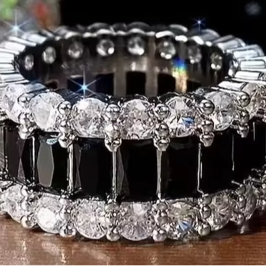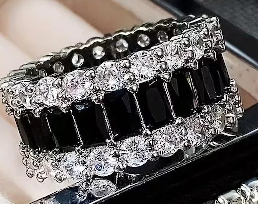 ชื่อสินค้า:แหวนกว้างเงินแท้ 925 ประดับมอยซาไนต์สีดำและขาว