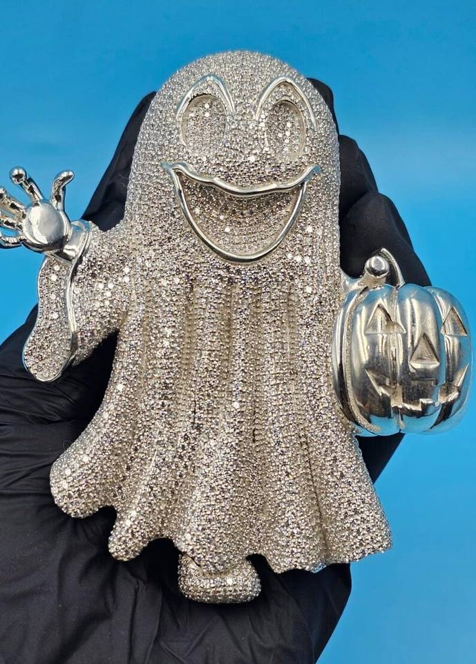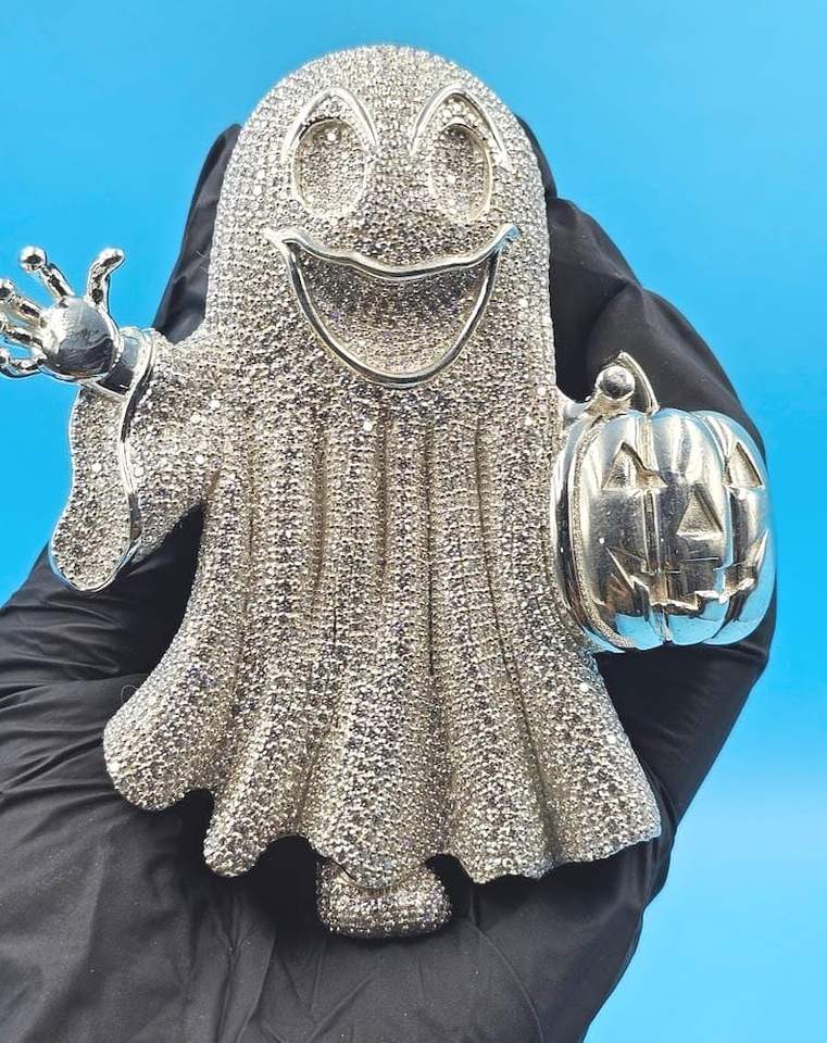 จี้ฮาโลวีนโมอิสซาไนต์ลายการ์ตูน Bling Ghost
