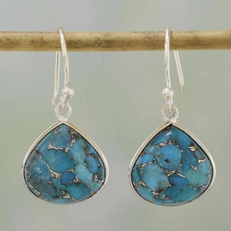 925ต่างหูเงินสเตอร์ลิงสีฟ้าทองแดงเทอร์ควอยซ์อัญมณีธรรมชาติต่างหูตะขอเกี่ยวเครื่องประดับขายส่ง