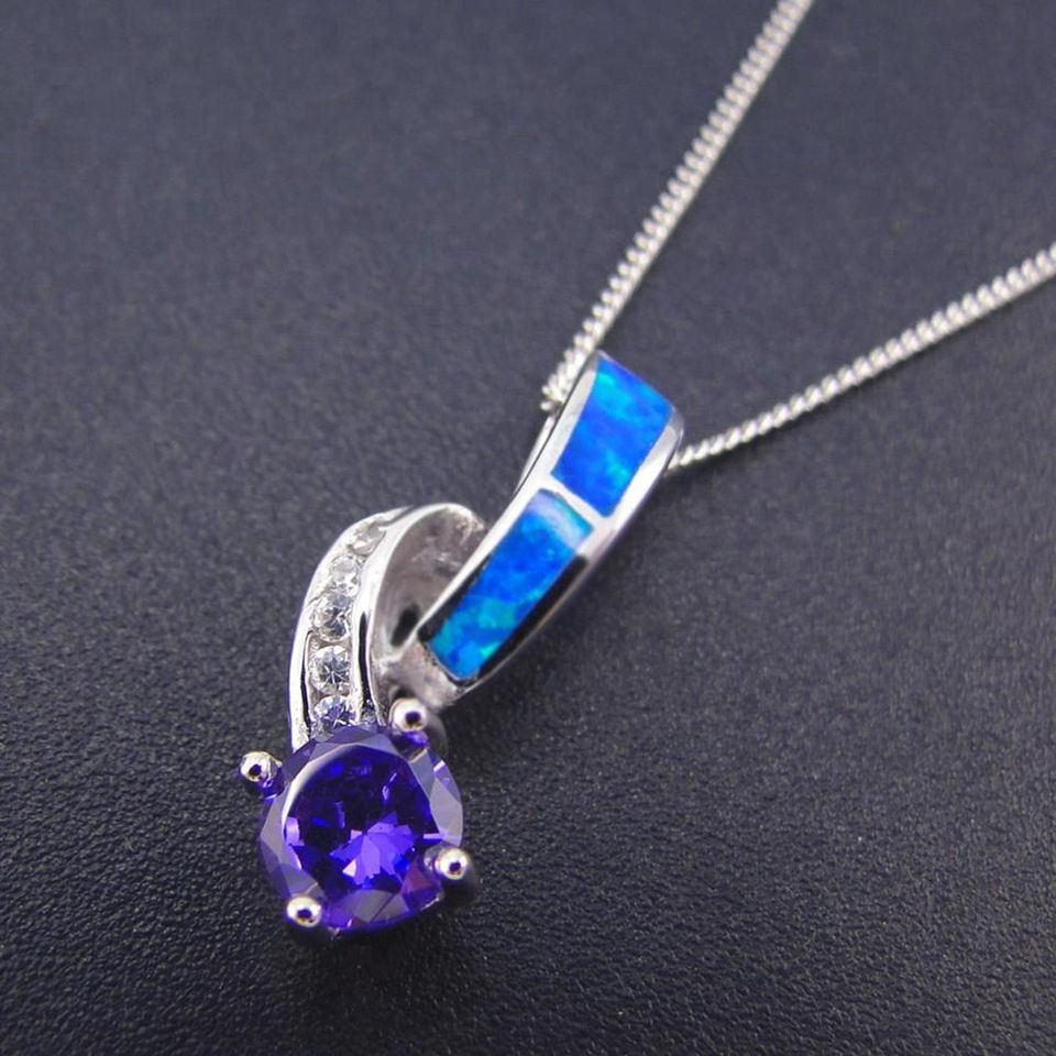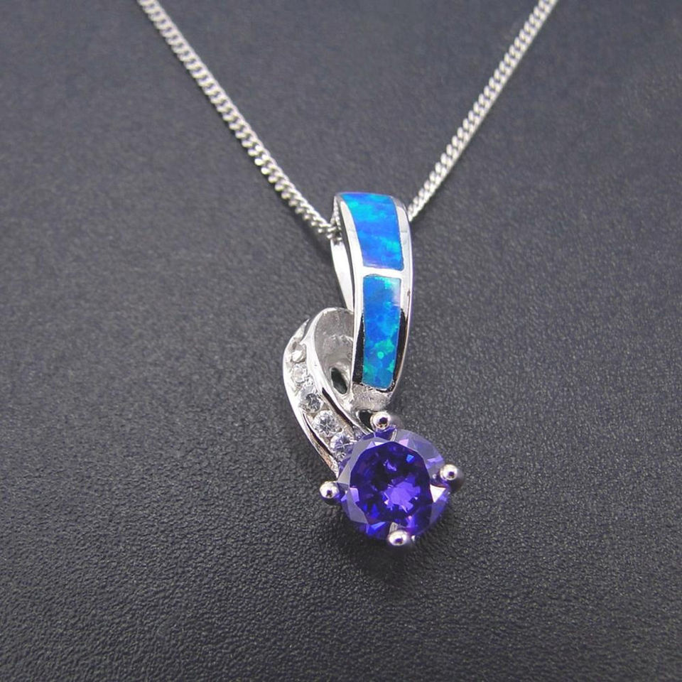 สร้อยคอจี้เงินแท้ 925 ชุบโรเดียม ประดับแทนซาไนต์-ของขวัญ