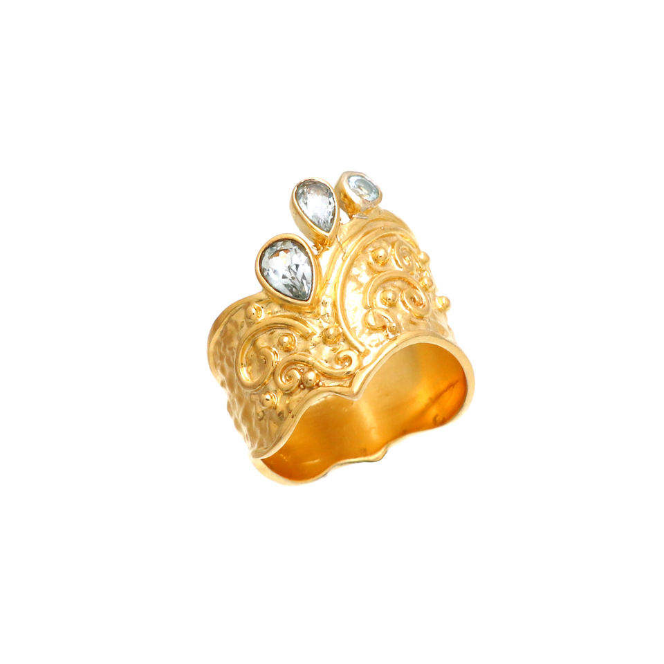 925แหวนพลอยบุษราคัมสีเงินสีฟ้าชุบทอง18K สไตล์อินเทรนด์สำหรับงานแต่งงานหรือวันครบรอบ