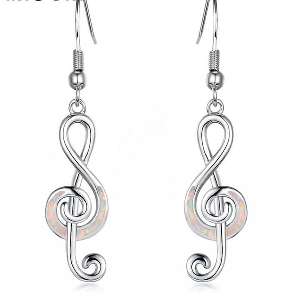 สร้อยคอเงินแท้ 925 ประดับโอปอลไฟสีฟ้าขาว รูปโน้ตดนตรี สำหรับผู้หญิง