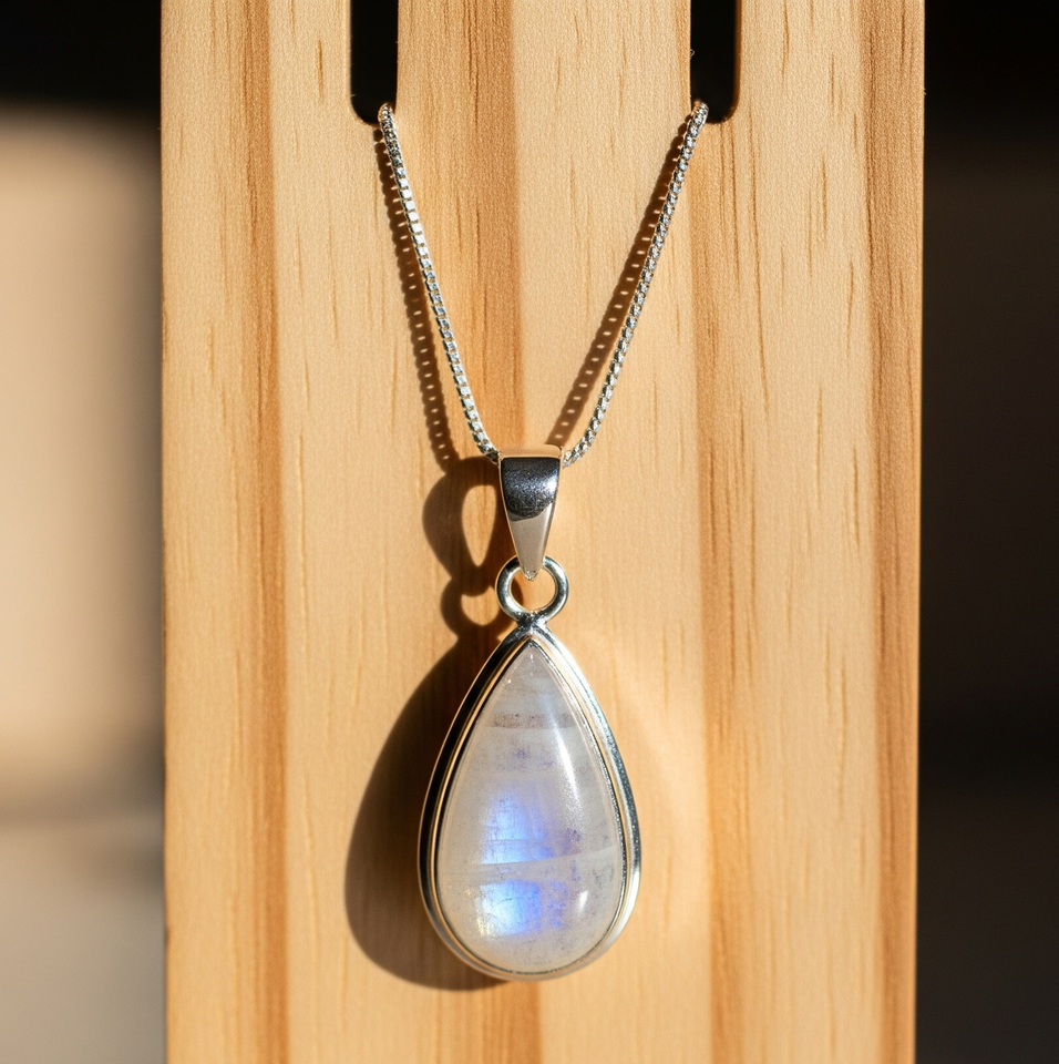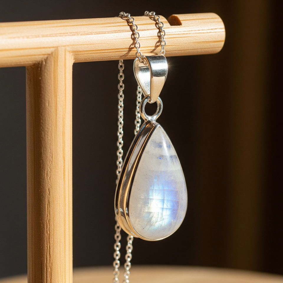 จี้ทองเหลืองสไตล์โบฮีเมียนหินมูนสโตนธรรมชาติสีน้ำเงินหินคริสตัลรักษาโรเดียมชุบของขวัญสำหรับทุกเพศจี้แฟชั่น