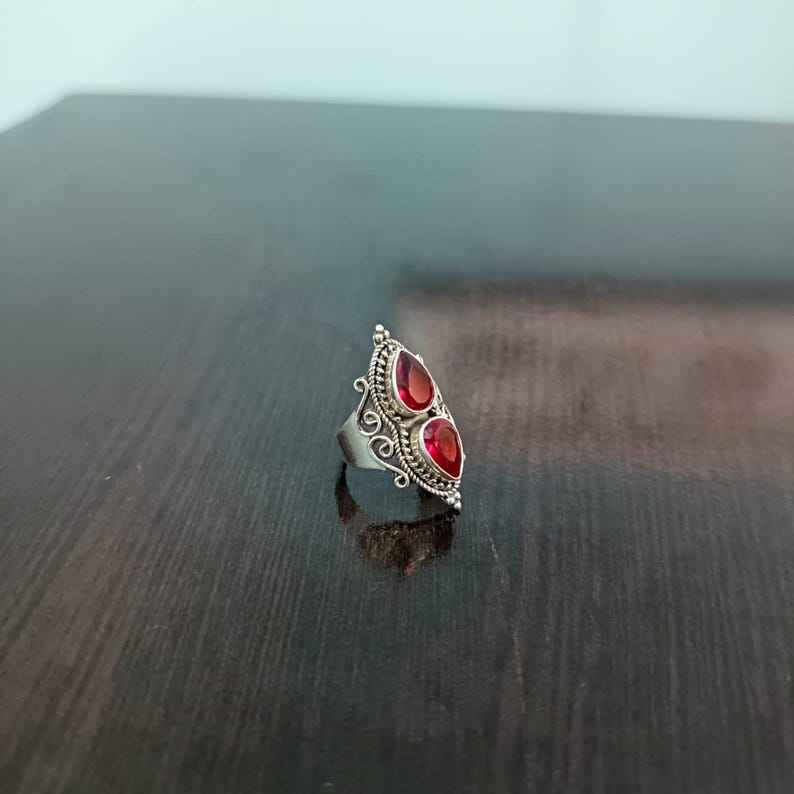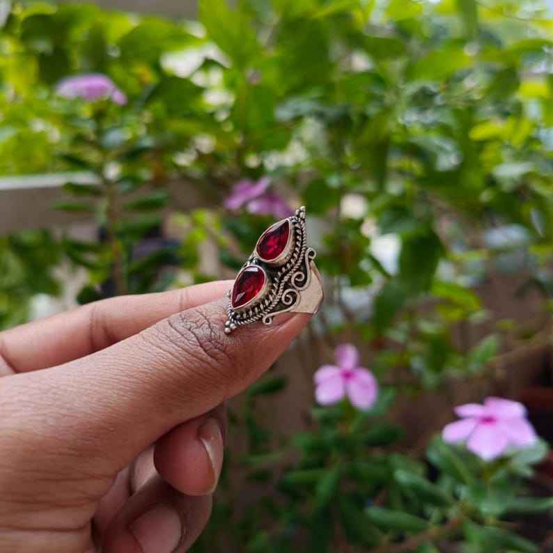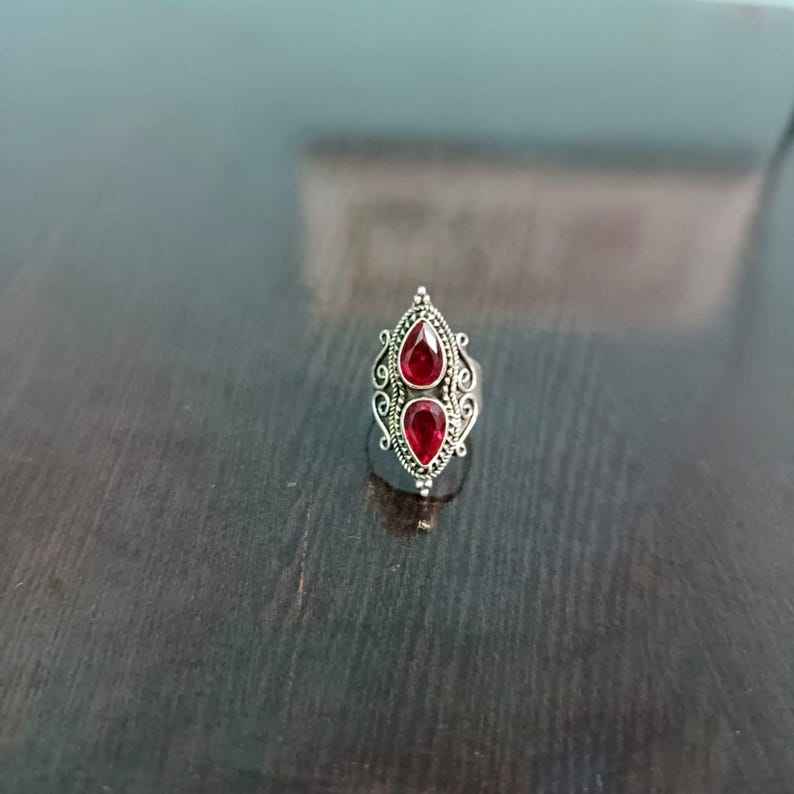 แหวนเงินแท้ 925 สไตล์โบฮีเมียน งานฝีมือ สำหรับงานแต่งงาน งานหมั้น งานครบรอบ งานปาร์ตี้ ประดับพลอยโกเมนสีแดงทรงรี สไตล์ศาสนาคริสต์ มีหลายขนาด