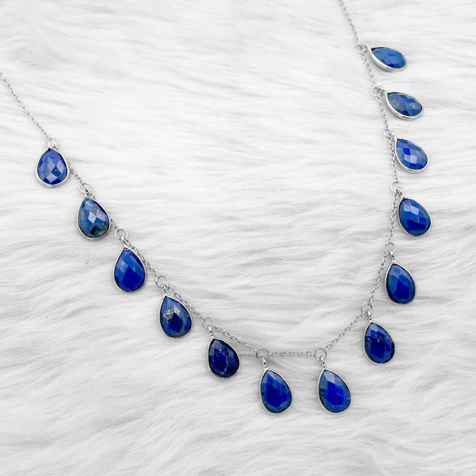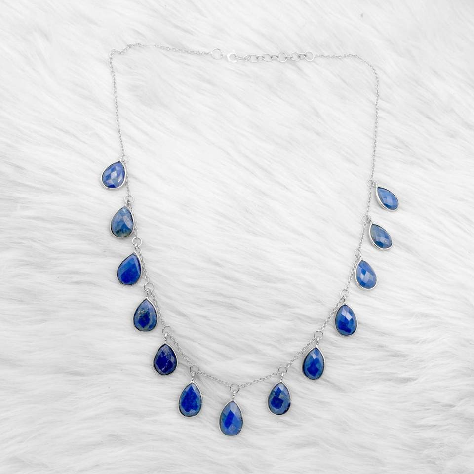 สร้อยคอเงินแท้ 925 สไตล์โบฮีเมียน ประดับพลอยธรรมชาติ ลาพิส ลาซูลี สีน้ำเงินแท้ ของขวัญวันครบรอบแต่งงาน รุ่น NL0165-GS