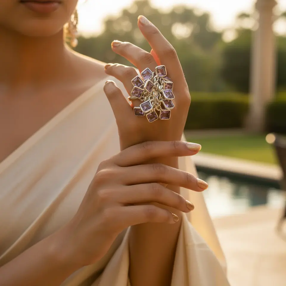 แหวนเงินแท้ 925 สไตล์โบฮีเมียนสำหรับผู้หญิง ชุบแพลตตินัม ประดับพลอยอะมีทิสต์เจียระไน งานจิวเวลรี่ชั้นดีสำหรับเป็นสัญญา