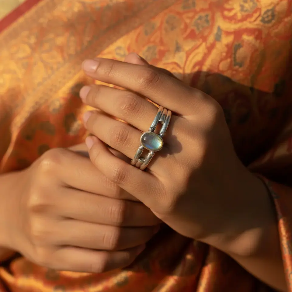 แหวนเงินแท้ 925 สไตล์โบโฮ ประดับมูนสโตน สำหรับผู้หญิง ลายเรขาคณิต ฝังแบบซ่อน ชุบโรเดียม ของขวัญเครื่องประดับ