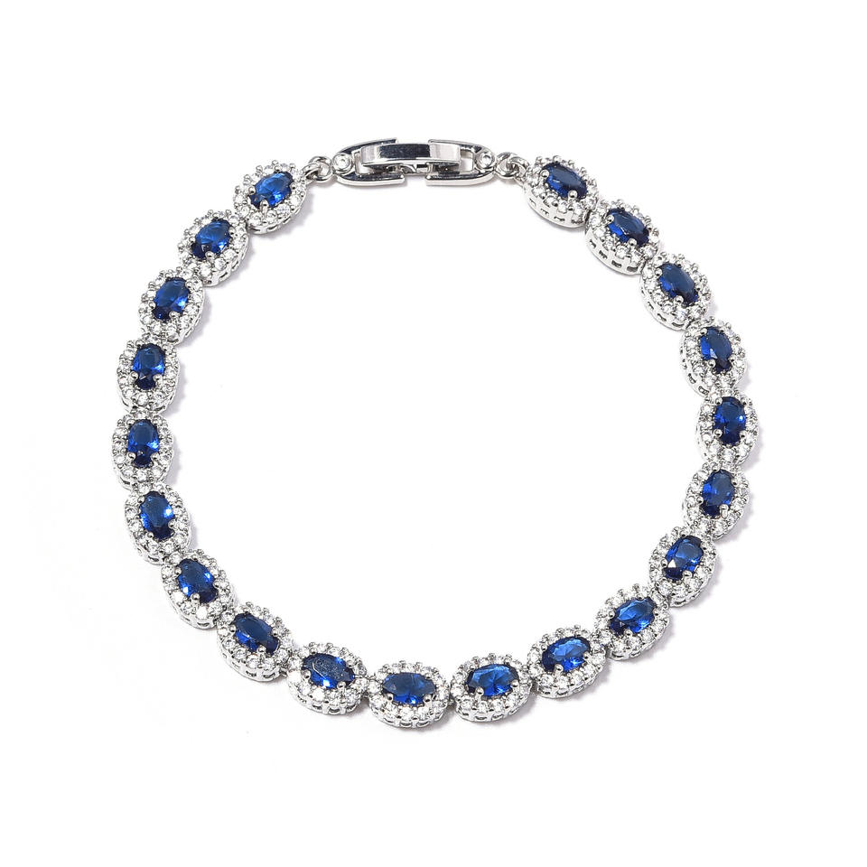 กำไลแซฟไฟร์สีฟ้าสำหรับเจ้าสาวทำจากเงินสเตอลิง925สำหรับผู้หญิงเครื่องประดับเครื่องแต่งกายสำหรับงานแต่งงานแบบคิวบิกเซอร์โคเนีย