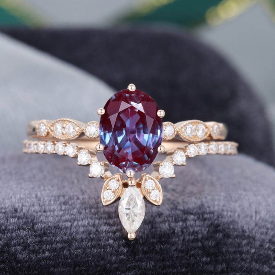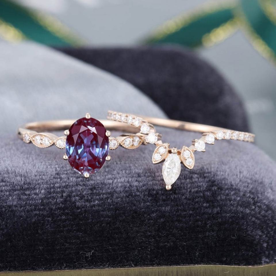 รูปร่างเพชร:ชุดแหวนอเล็กซานไดรต์