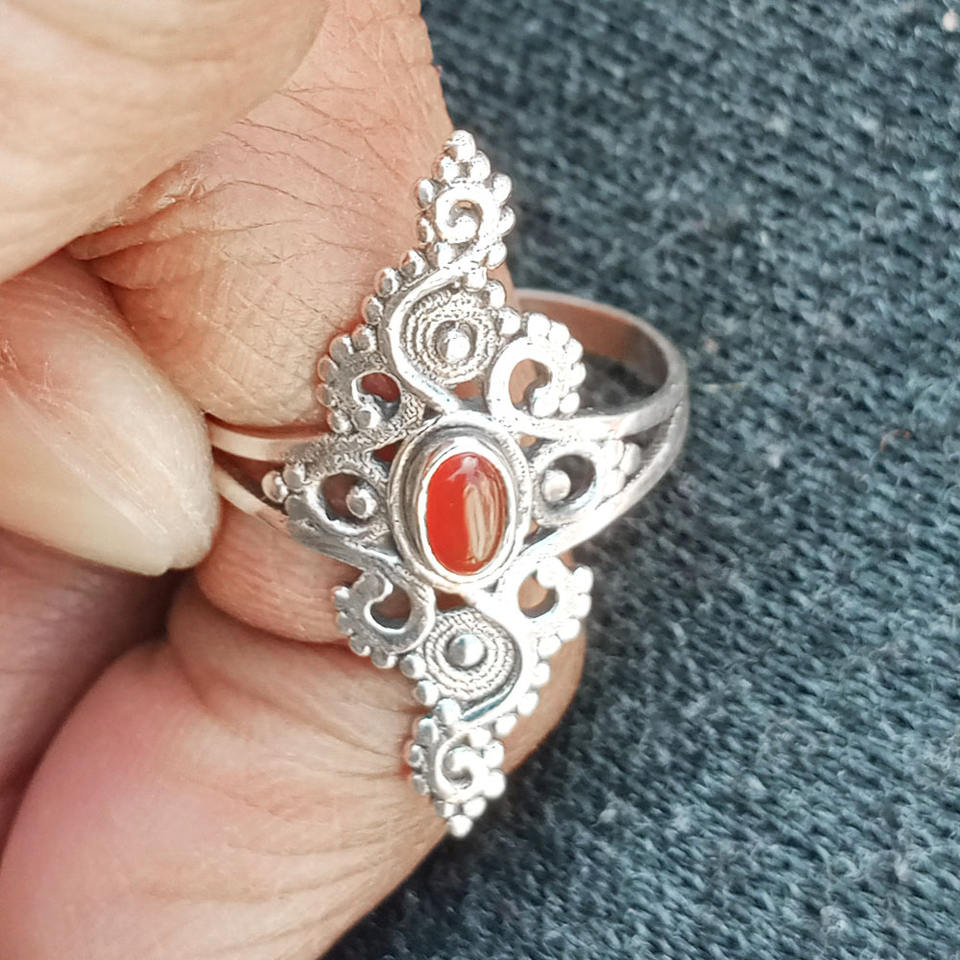 แหวนพลอยคาร์เนเลี่ยนเงินสเตอร์ลิง925สำหรับเด็กผู้หญิงเครื่องประดับเงินทำด้วยมือขายส่งแหวนเงินสเตอร์ลิงสำหรับผู้หญิง