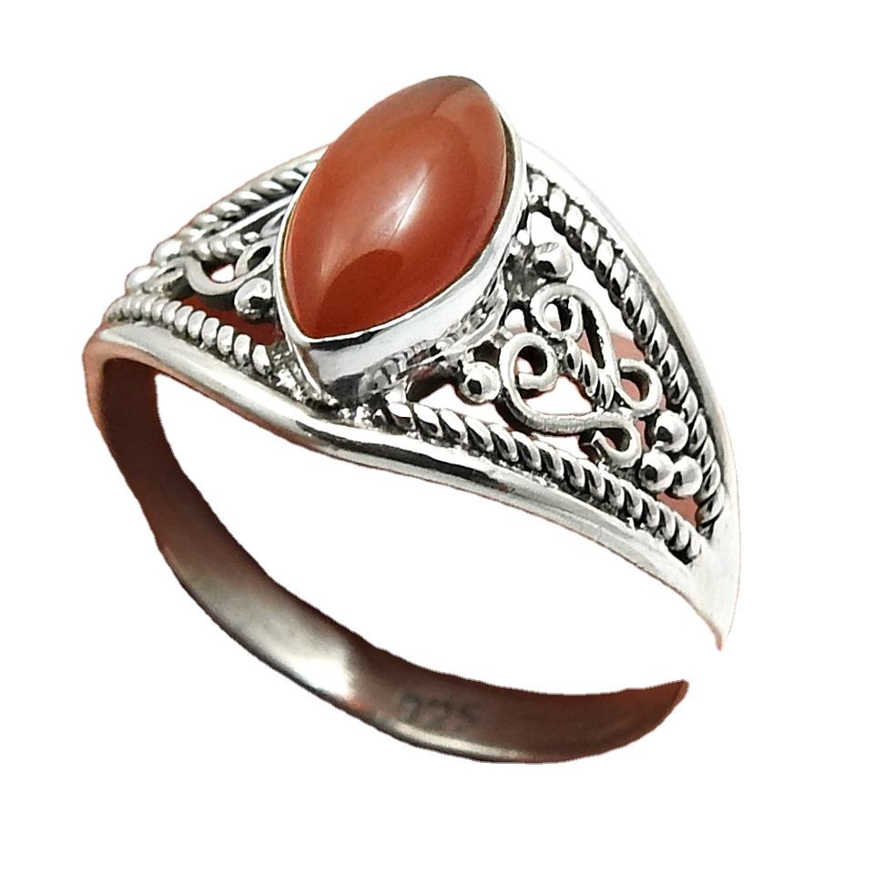 แหวนคาร์เนเลี่ยนเงินสเตอร์ลิงทำด้วยมือ925ชุดฝาเป็นพลอยดีไซน์ราชวงศ์แหวนเงินของขวัญขายส่งสำหรับเด็กผู้หญิงผู้หญิง