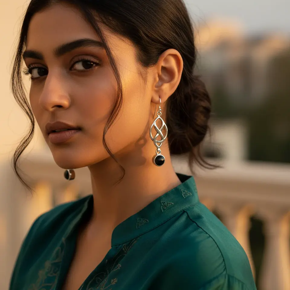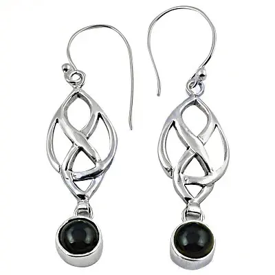 925 Sterling Silver Celtic Knot Drop Earrings with Onyx Gemstones Fashionable Jewelry for Women
