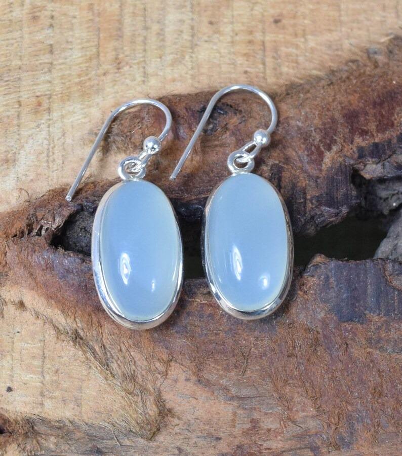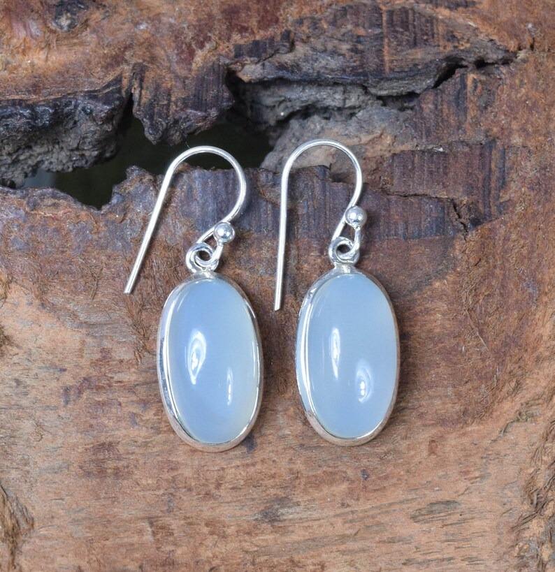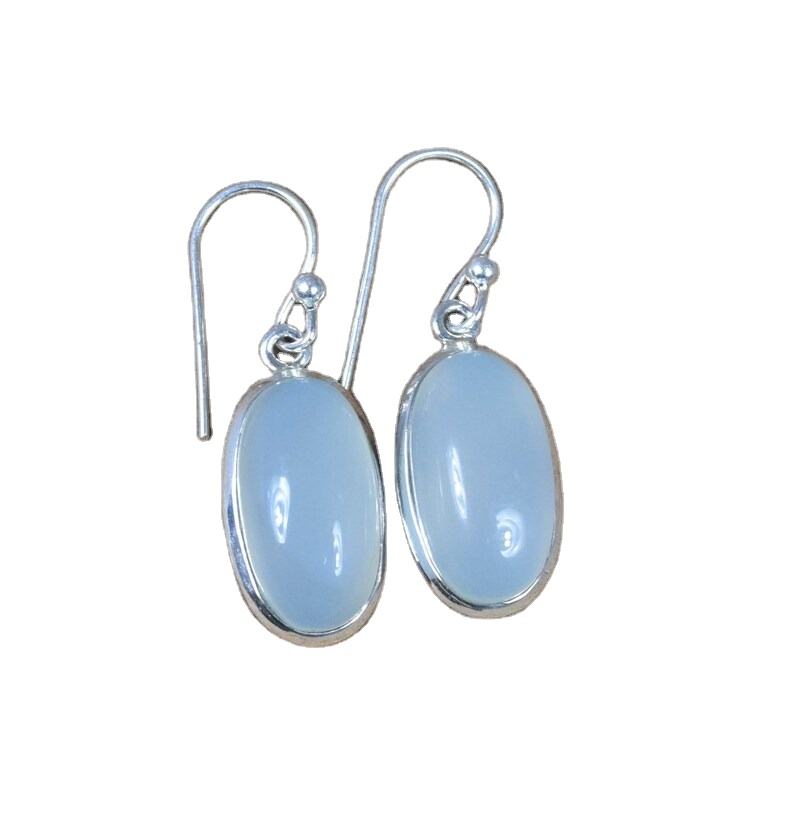 ต่างหูพลอยคาลซิโดนีเงินสเตอร์ลิง925ทำมือต่างหูเงินสไตล์ Boho สำหรับผู้หญิงของขวัญแต่งงาน