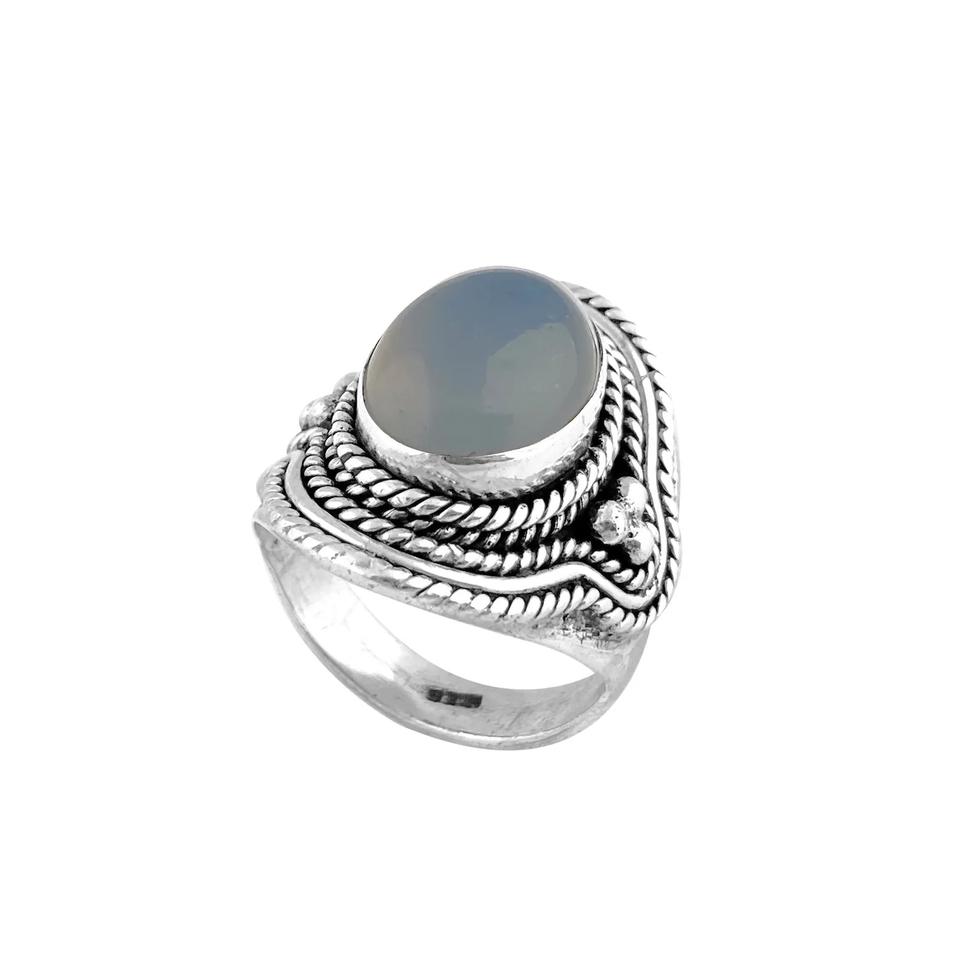 แหวนพลอยคาลซิโดนีเงินสเตอร์925ทำด้วยมือแหวนหมั้นแบบกว้างเครื่องประดับอัญมณีสำหรับงานแต่งงาน