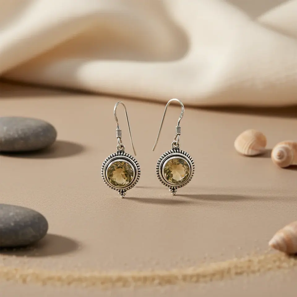 ต่างหูระย้าเงินแท้ 925 ชุบทอง 18K ประดับพลอยซิทริน สำหรับผู้หญิง สไตล์วินเทจ