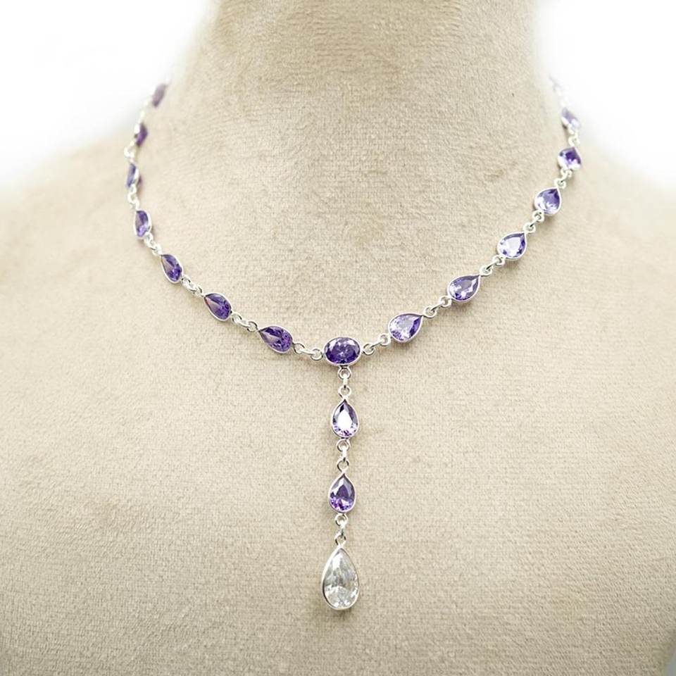 สร้อยโชคเกอร์เงินสเตอริ925อเมทิสต์ธรรมชาติและอัญมณี CZ ของขวัญแฟชั่นสีม่วงสำหรับผู้หญิง