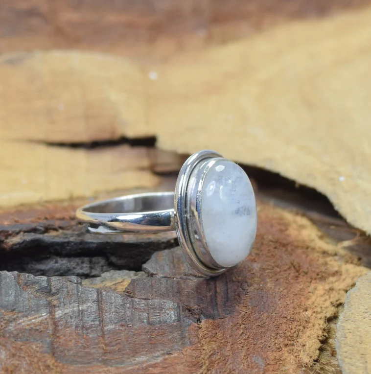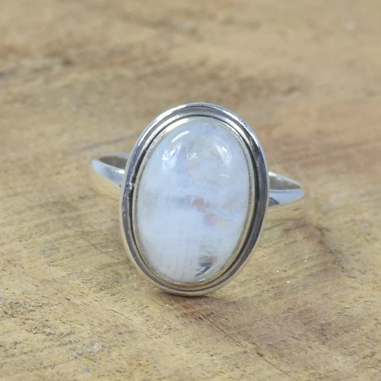 แหวนโบฮีเมียนคริสเตียนเงินสเตอร์ลิง925พลอยมูนสโตนสีรุ้งเครื่องประดับทำมือเป็นมิตรกับสิ่งแวดล้อมใช้ได้ทั้งชายและหญิง