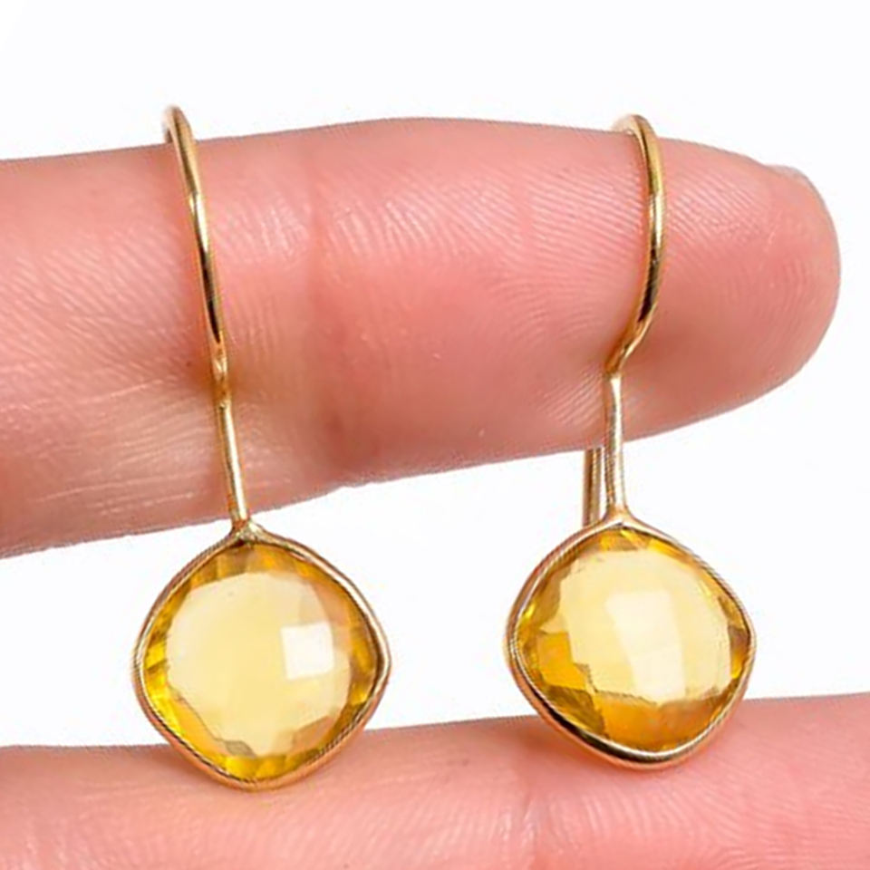 ต่างหูเงินแท้ 925 ประดับพลอยซิทรินทรงหยดน้ำ | ต่างหูแบบห่วงลวดประดับซิทรินธรรมชาติขนาด 8 มม. | เครื่องประดับเงินสวยหรูสำหรับผู้หญิง