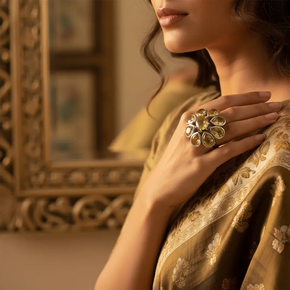 925 Sterling Silver Citrine Gemstone Flower Ring for Women Elegant Moissanite Rings