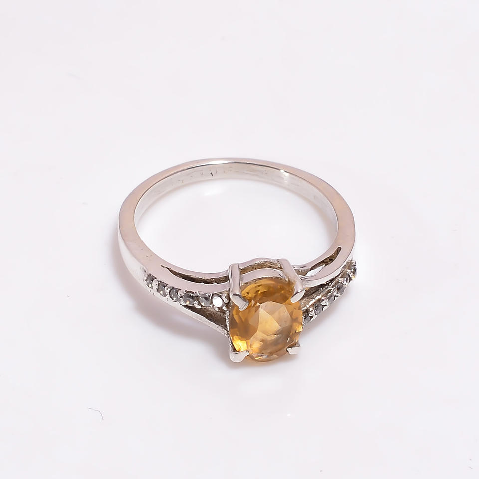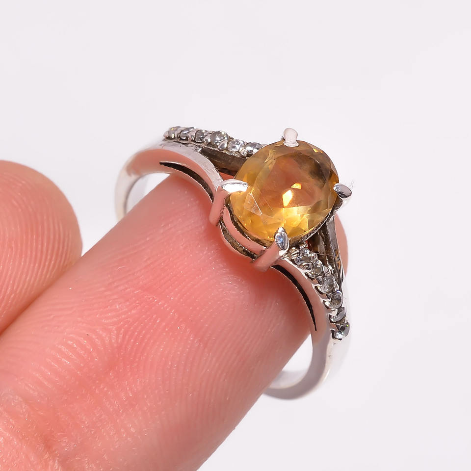 แหวนเงินสเตอร์ลิง925แบบคลาสสิกพร้อมพลอยซิทรินทรงรีตัดเป็นรูปไข่สำหรับเป็นของขวัญครบรอบการหมั้นหรืองานแต่งงาน
