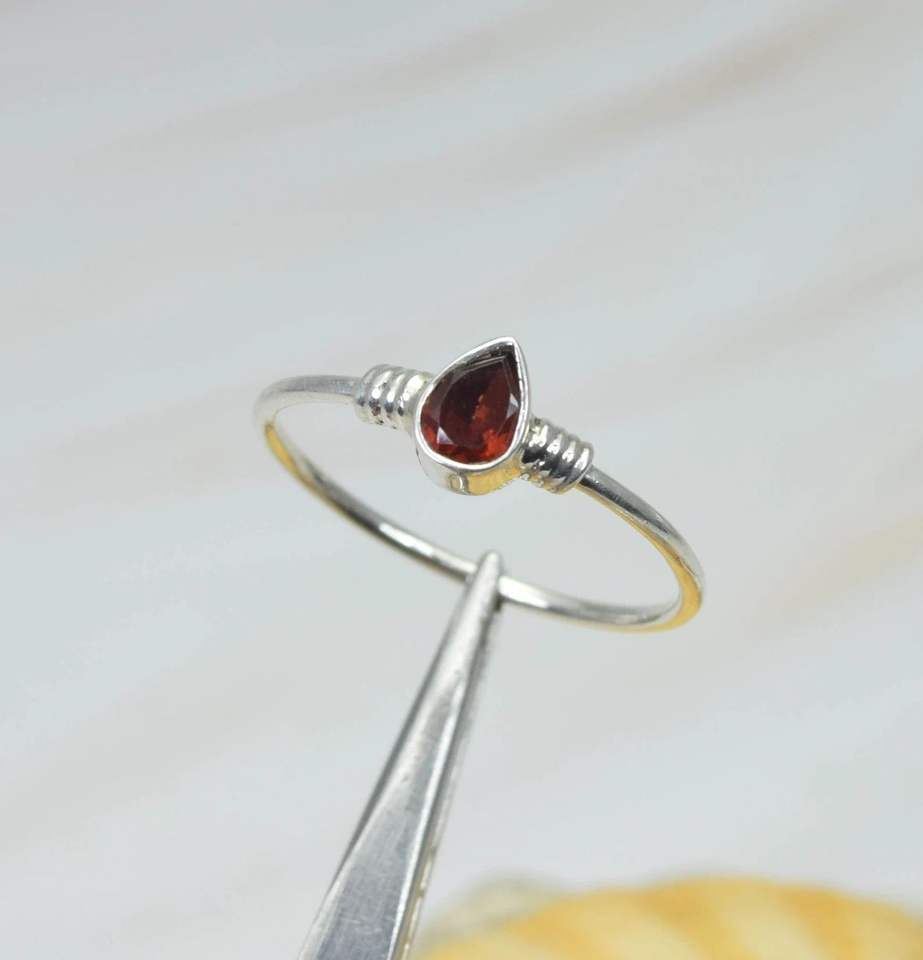 แหวนเงินสเตอร์ลิง925แบบคลาสสิกประดับพลอยโกเมนด้วยลูกแพร์ตัดสำหรับงานครบรอบแต่งงานหรือของขวัญงานเลี้ยง