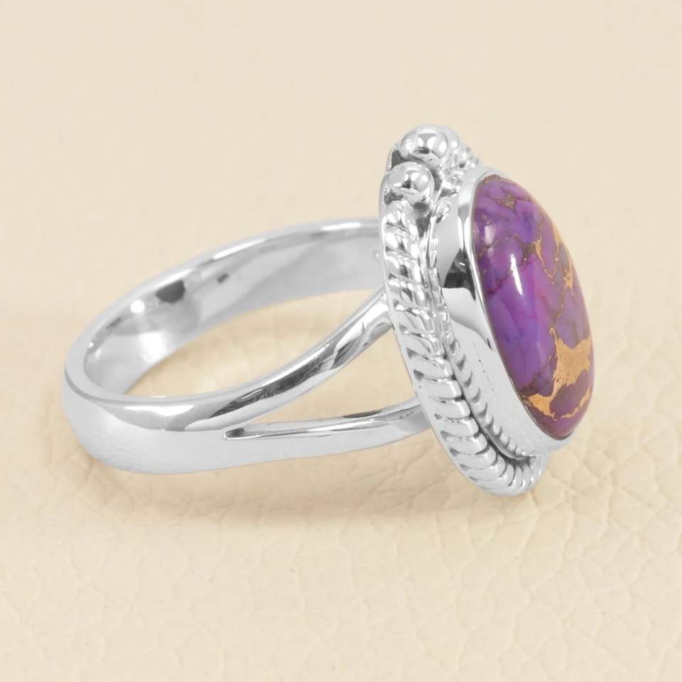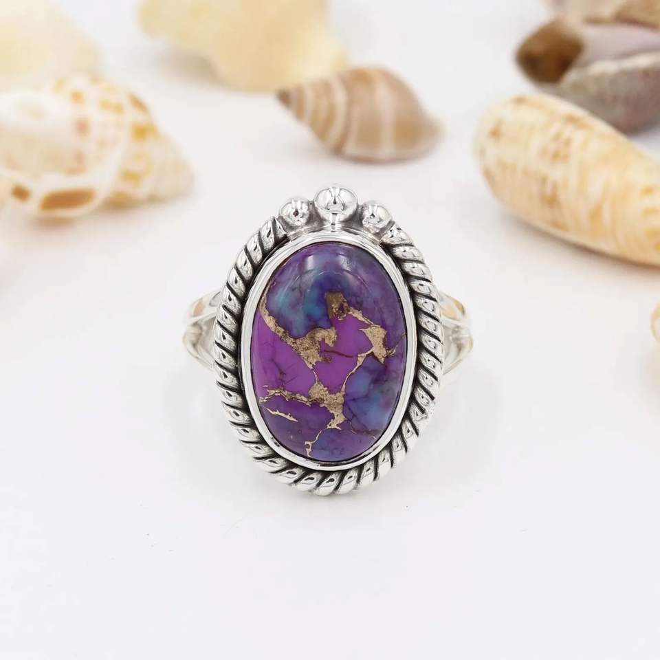 แหวนแต่งงานทรงรีสีเงินสเตอร์ลิง925แบบคลาสสิกแหวนแต่งงานสีม่วงทองแดงเทอร์ควอยซ์อัญมณีสำหรับการหมั้นครบรอบหรือของขวัญปาร์ตี้