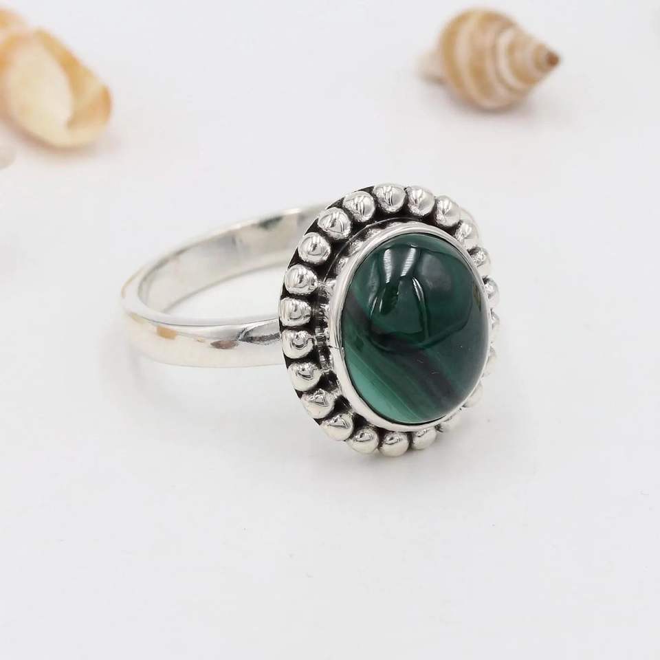 แหวนพลอยมาลาไคต์ทรงวงรีสุดคลาสสิกทำจากเงินสเตอร์ลิง925เจียระไนเพชรอัญมณีทับทิมใช้ได้ทั้งชายและหญิงสำหรับงานแต่งงานวันครบรอบ