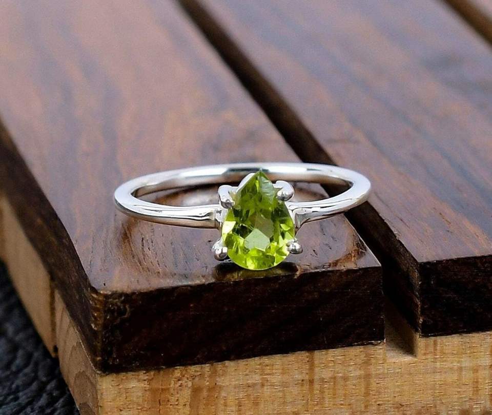 925แหวนพลอยเพอริดอตตัดแบบคลาสสิกสำหรับลูกแพร์เงินสเตอร์ลิงเครื่องประดับหรูหราสำหรับงานแต่งงานงานหมั้นของขวัญครบรอบแต่งงาน