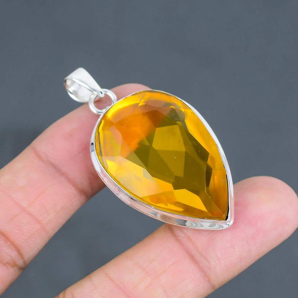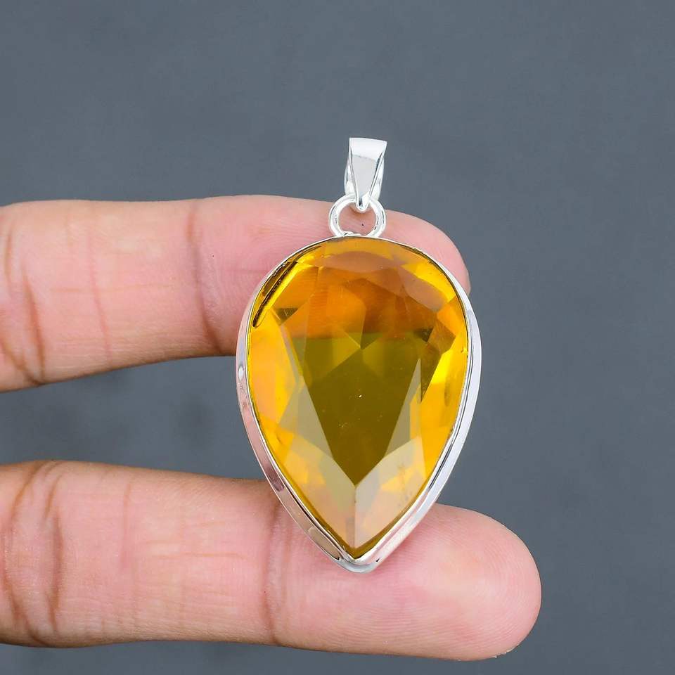 925สเตอร์ลิงเงินคลาสสิกจี้หยดน้ำตาอัญมณีซิทรีนที่สมบูรณ์แบบของขวัญงานเลี้ยงจี้ดีและเสน่ห์