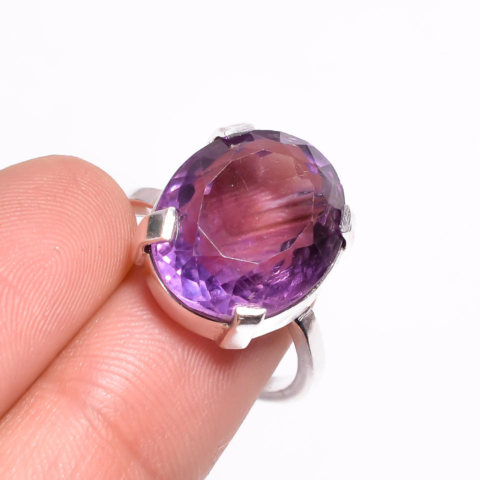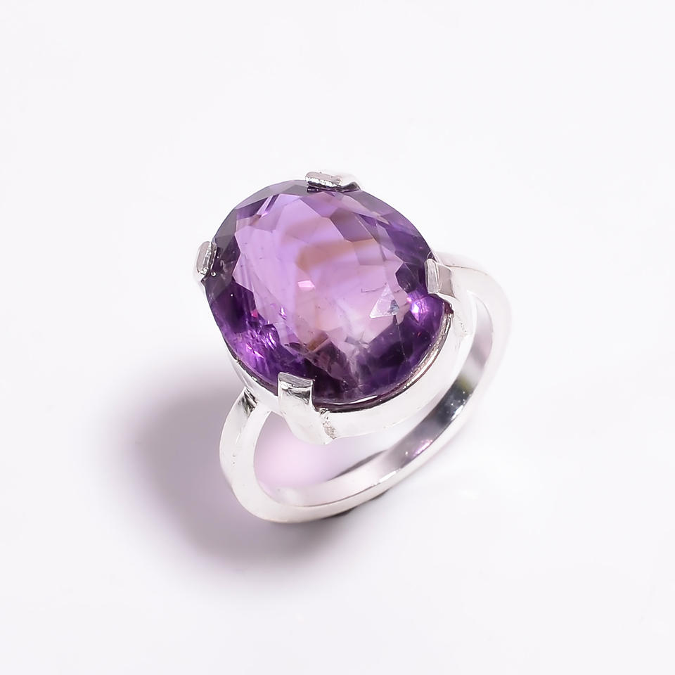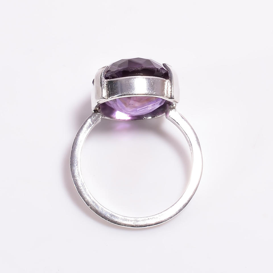 แหวนพลอยอเมทิสต์สีม่วงแหวนคลาสสิกสีเงินสเตอร์ลิง925ทรงรีสำหรับงานแต่งงานงานครบรอบแต่งงาน