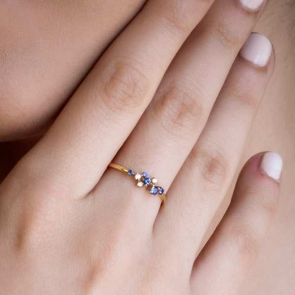 แหวนเงินสเตอร์ลิง925คลาสสิกพลอยแซฟไฟร์ธรรมชาติสีฟ้าเรียบง่ายเครื่องประดับสำหรับงานแต่งงานที่ดีการตั้งค่าไข่มุกเพชรผู้หญิง