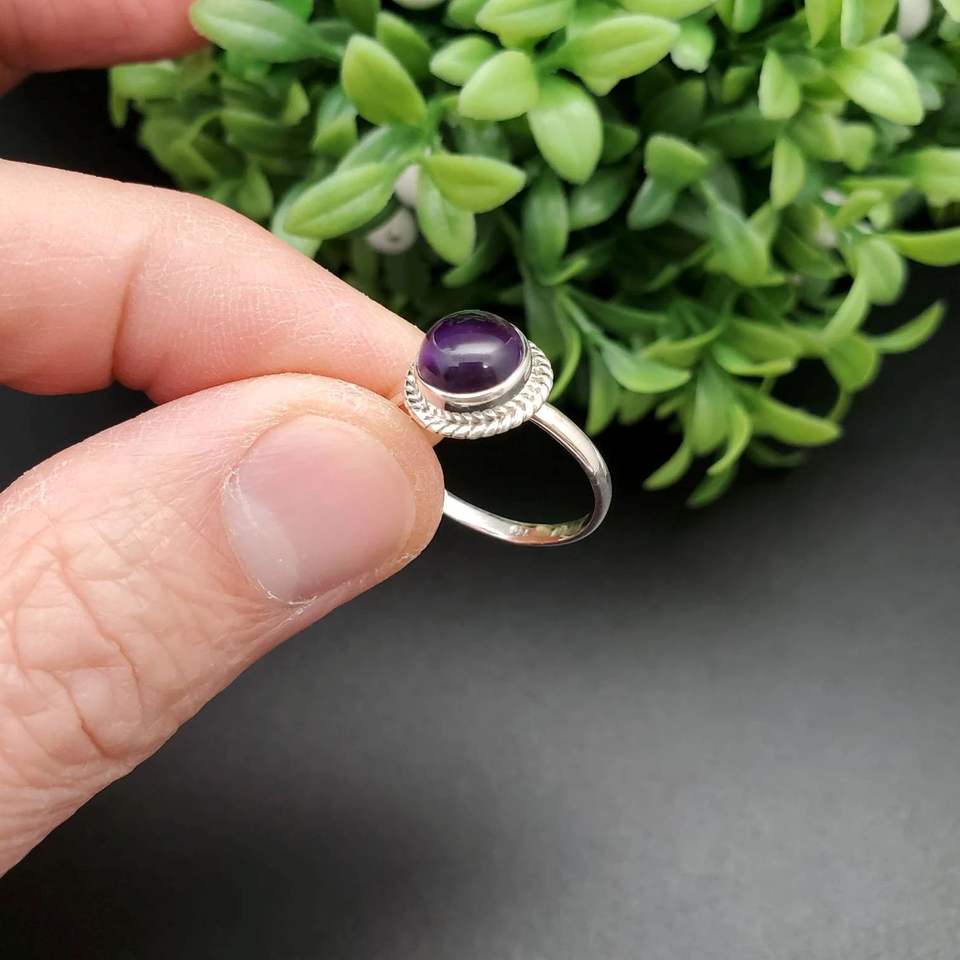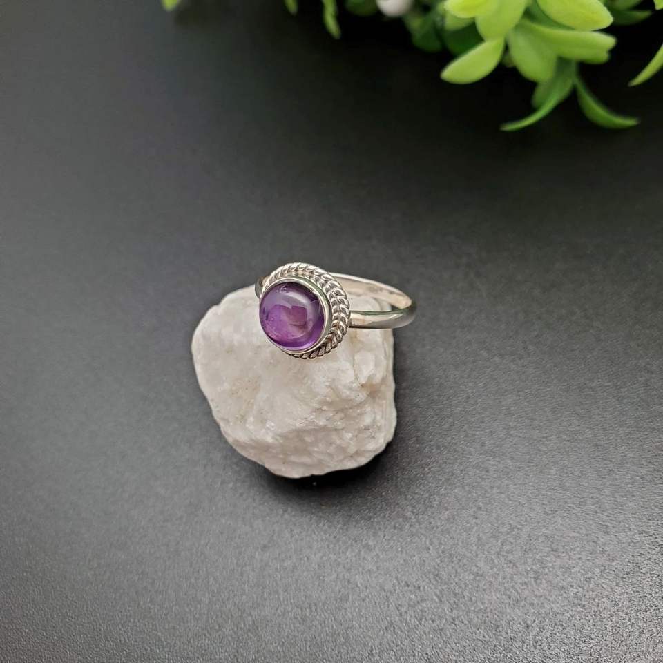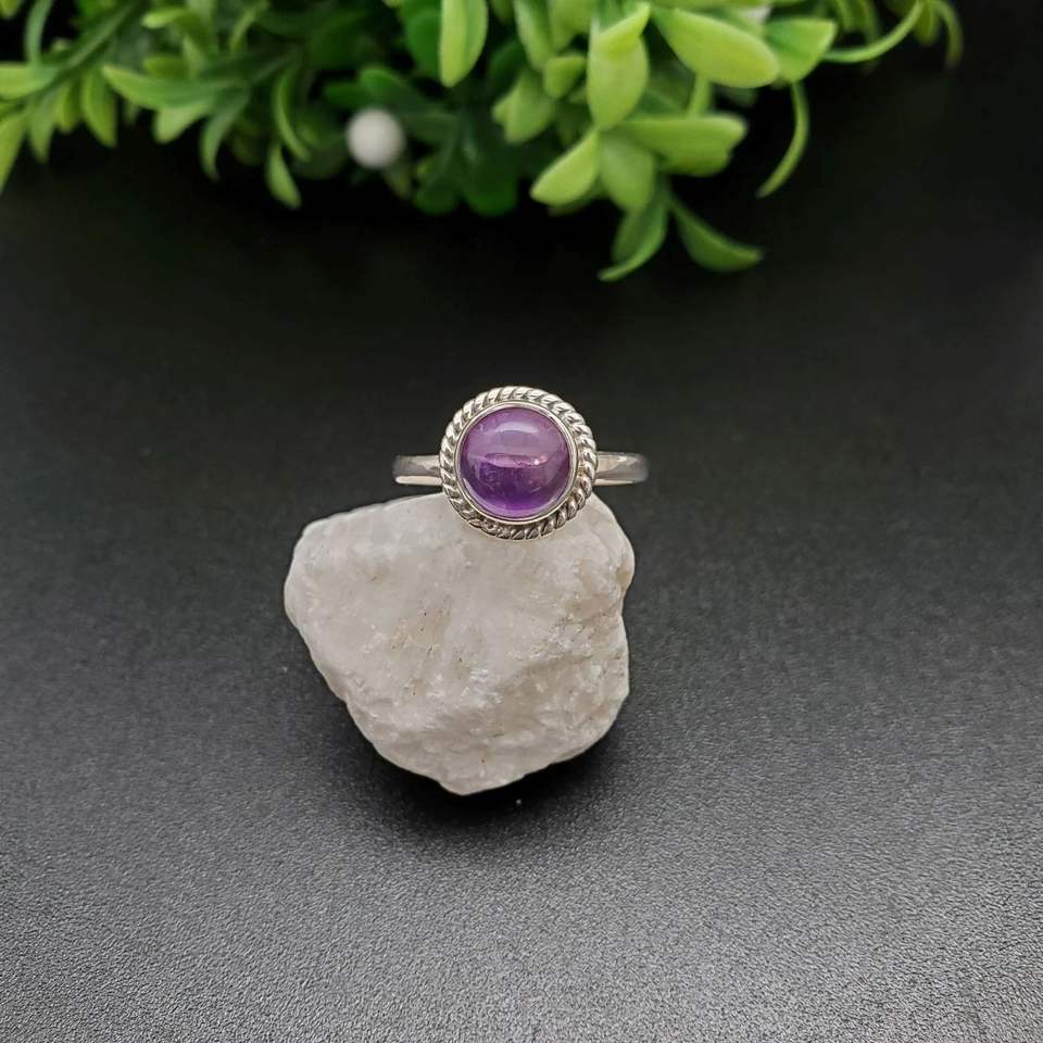 แหวนพลอยอเมทิสต์ทรงกลมสีเงินสเตอร์ลิง925เครื่องประดับชั้นดีสำหรับงานแต่งงานงานหมั้นงานปาร์ตี้วันครบรอบ