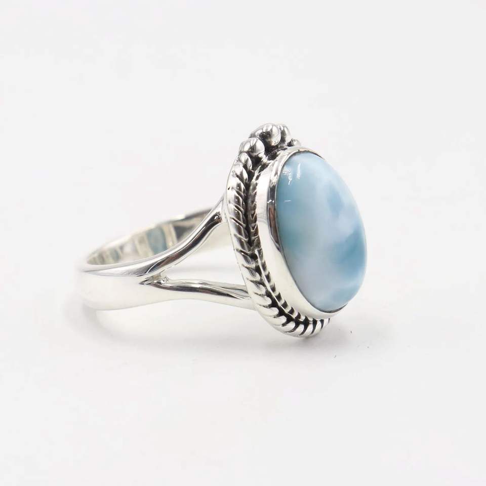 แหวนเงินแท้925คลาสสิกพร้อมพลอยลาริมาร์ทรงไข่สำหรับงานครบรอบแต่งงานงานหมั้นหรือของขวัญปาร์ตี้
