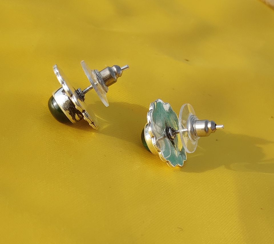 ต่างหูเม็ดเดี่ยวสีเงินสเตอร์ลิง925คุณภาพสูงตัดอัญมณีมาลาไคท์ของขวัญที่สมบูรณ์แบบสำหรับวันครบรอบปาร์ตี้คู่รัก