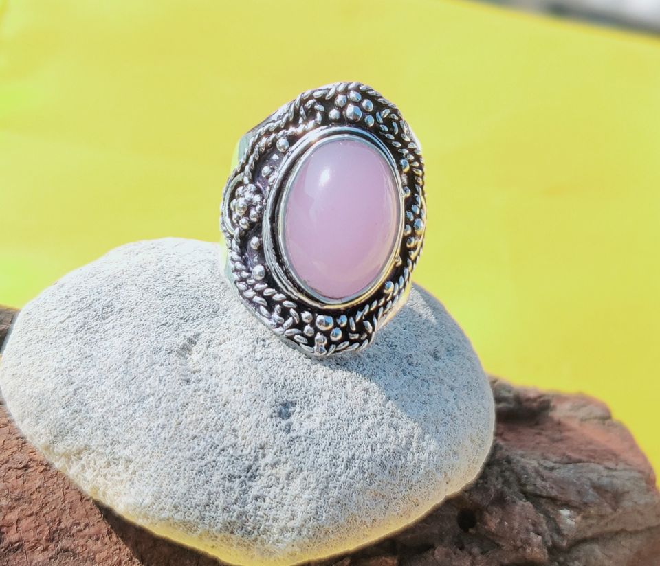 แหวนหมั้นแต่งงานแบบคลาสสิกสีเงินสเตอร์ลิง925พลอยคาลซิโดนีสังเคราะห์8gm ตัดวงรีใช้ได้ทุกเพศสำหรับงานปาร์ตี้
