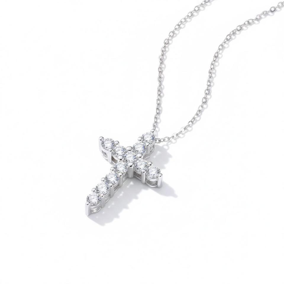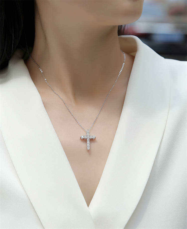 จี้สร้อยคอรูปกางเขนเงินแท้ 925 ประดับเพชรเพาะเลี้ยงในห้องปฏิบัติการทองคำบริสุทธิ์ 10K 14K สร้อยคอคริสเตียนแทนความศรัทธา ของขวัญสำหรับผู้หญิง