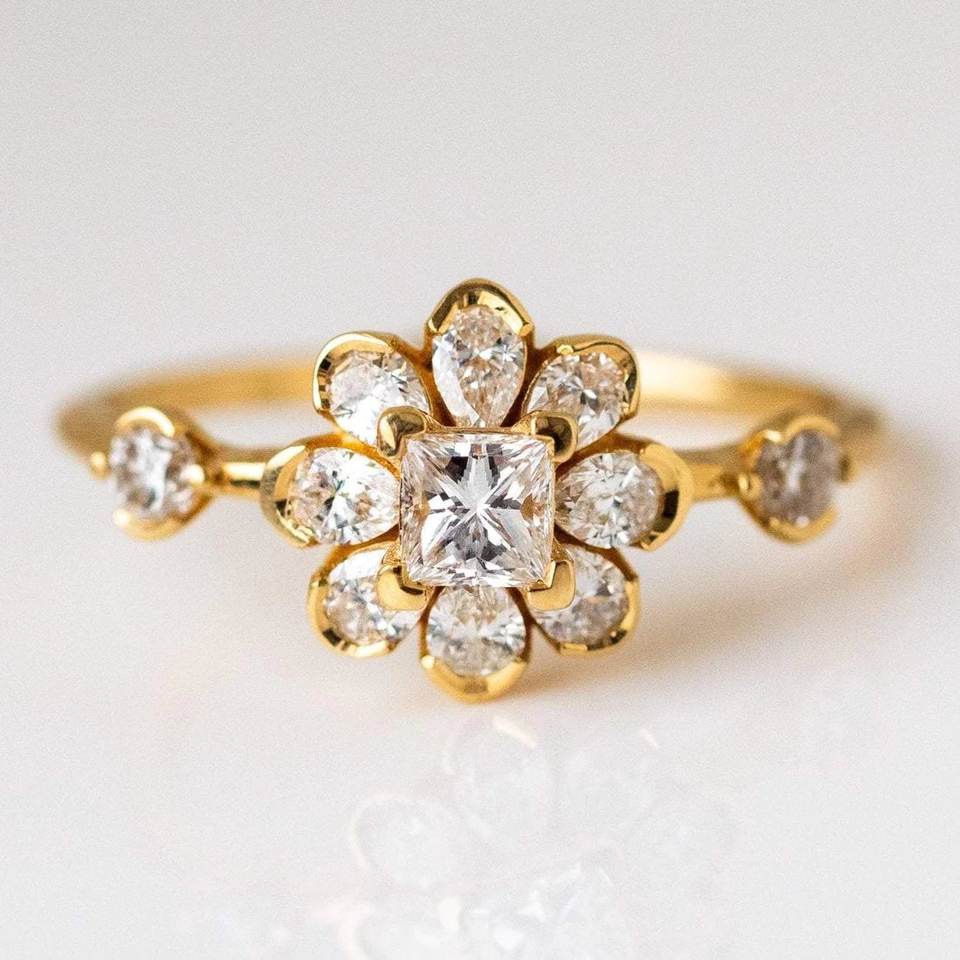 แหวนเงินแท้ 925 ประดับเพชรคิวบิกเซอร์โคเนีย ชุบทอง 18k สำหรับผู้หญิง แหวนหมั้น แหวนแต่งงาน แหวนเจ้าสาว แหวนงานเลี้ยง ปรับขนาดได้