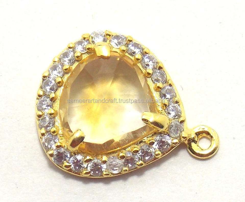 Citrine Quartz Gemstone Gold Plated CZ Bezel ConnectorProduct Name