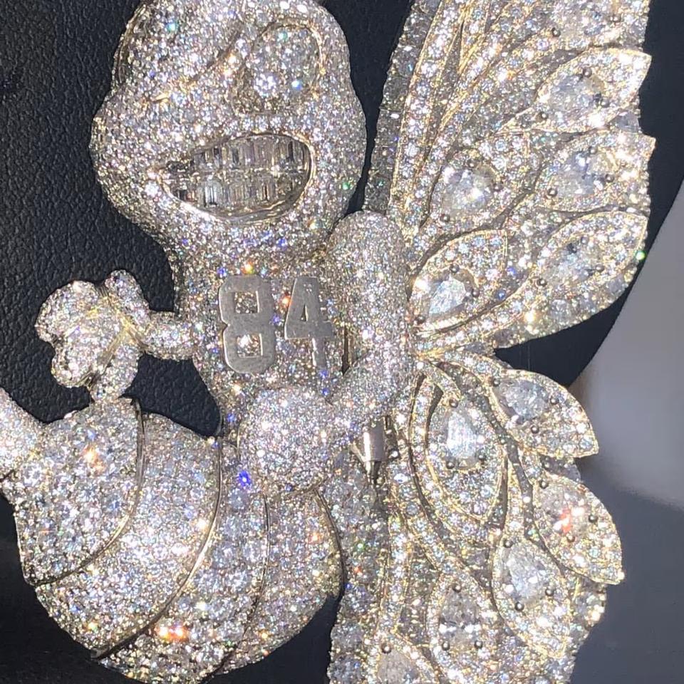 จี้รูปผึ้งเงินแท้ 925 ประดับเพชรโมอิสซาไนต์ VVS แบบกำหนดเองได้ พร้อมโลโก้ จี้รูปสัตว์ 3 มิติ ดีไซน์ฮิปฮอป รับรองโดย IGI