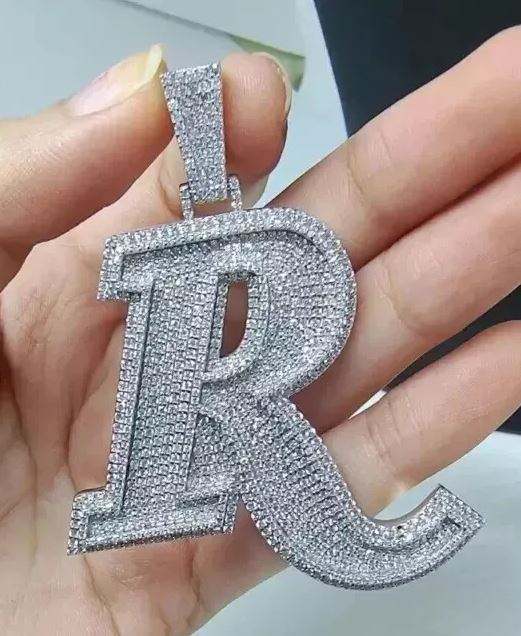 จี้เงินแท้ 925 รูปตัว 'R' แบบคลาสสิก ประดับเพชรทรงกลม 3 กะรัต ชุบทอง เหมาะสำหรับงานปาร์ตี้