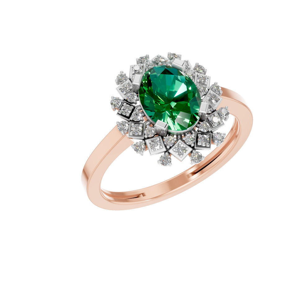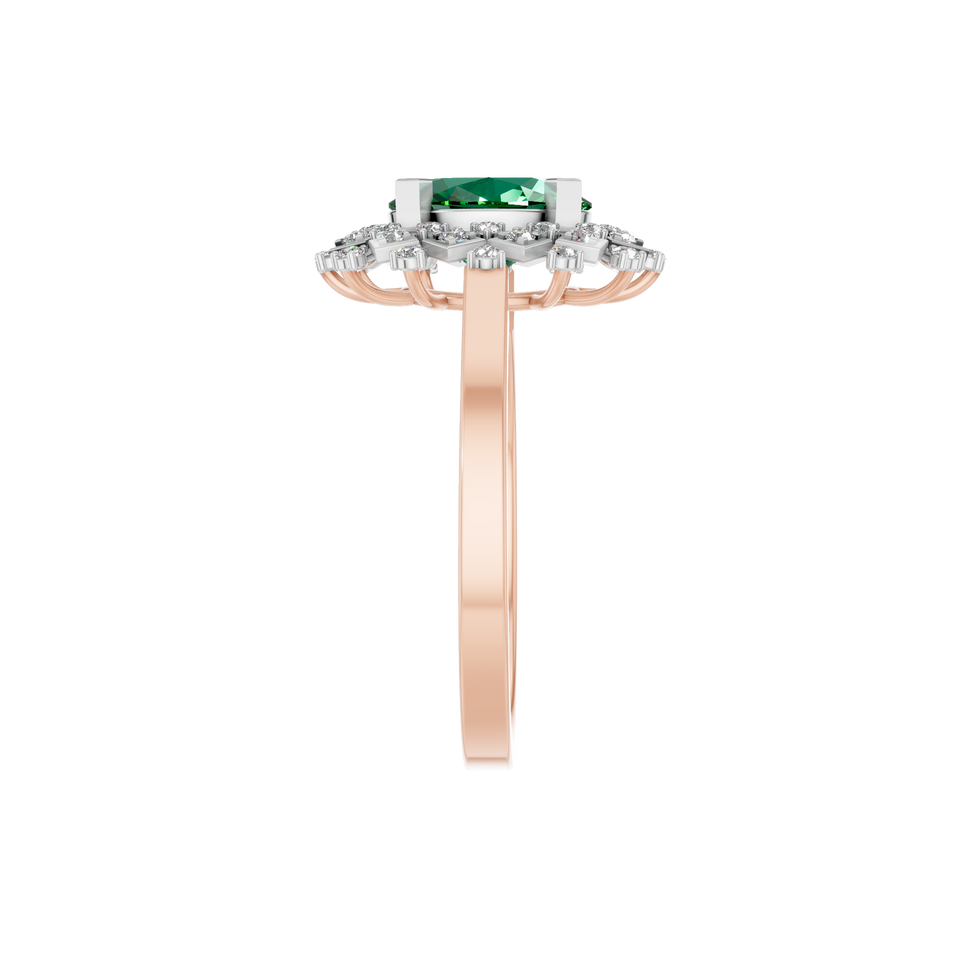 แหวนหมั้นผู้หญิงเงินแท้ 925 ประดับเพชรโมอิสซาไนต์ทรงกลมแบบคลัสเตอร์ ประดับเพชรทรงรีสังเคราะห์สีเขียวมรกต 37 เม็ด