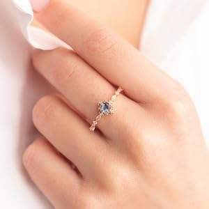 แหวนหมั้นเงินแท้ 925 ประดับอเล็กซานไดรต์ทรงเหลี่ยม แหวนแต่งงานผู้หญิงแบบหินเดี่ยว ตัวเรือนแบบหนามเตย ดีไซน์หรูหราสง่างาม