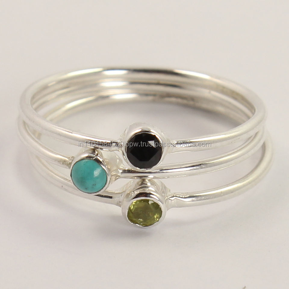 แหวนสะสมเล็กๆสีเงินแท้925กรอบน่ารักพร้อมอัญมณีหลากสีธรรมชาติทรงกลมสำหรับงานแต่งงานและปาร์ตี้
