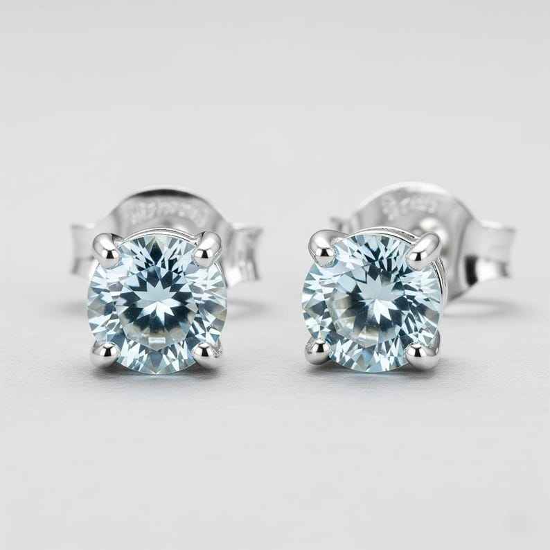 ต่างหูเงินแท้ 925 ประดับพลอยอะความารีน ดีไซน์เรียบหรู สำหรับคนเกิดเดือนมีนาคม ของขวัญเครื่องประดับอัญมณี