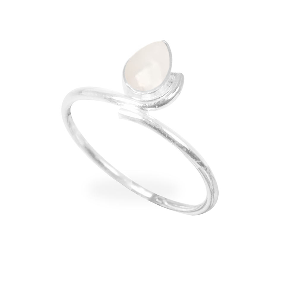แหวนดีไซน์เนอร์925เงินสเตอร์ลิงประดับพลอยคาลซิโดนีสีขาวสำหรับสุภาพสตรีเครื่องประดับงานแต่ง